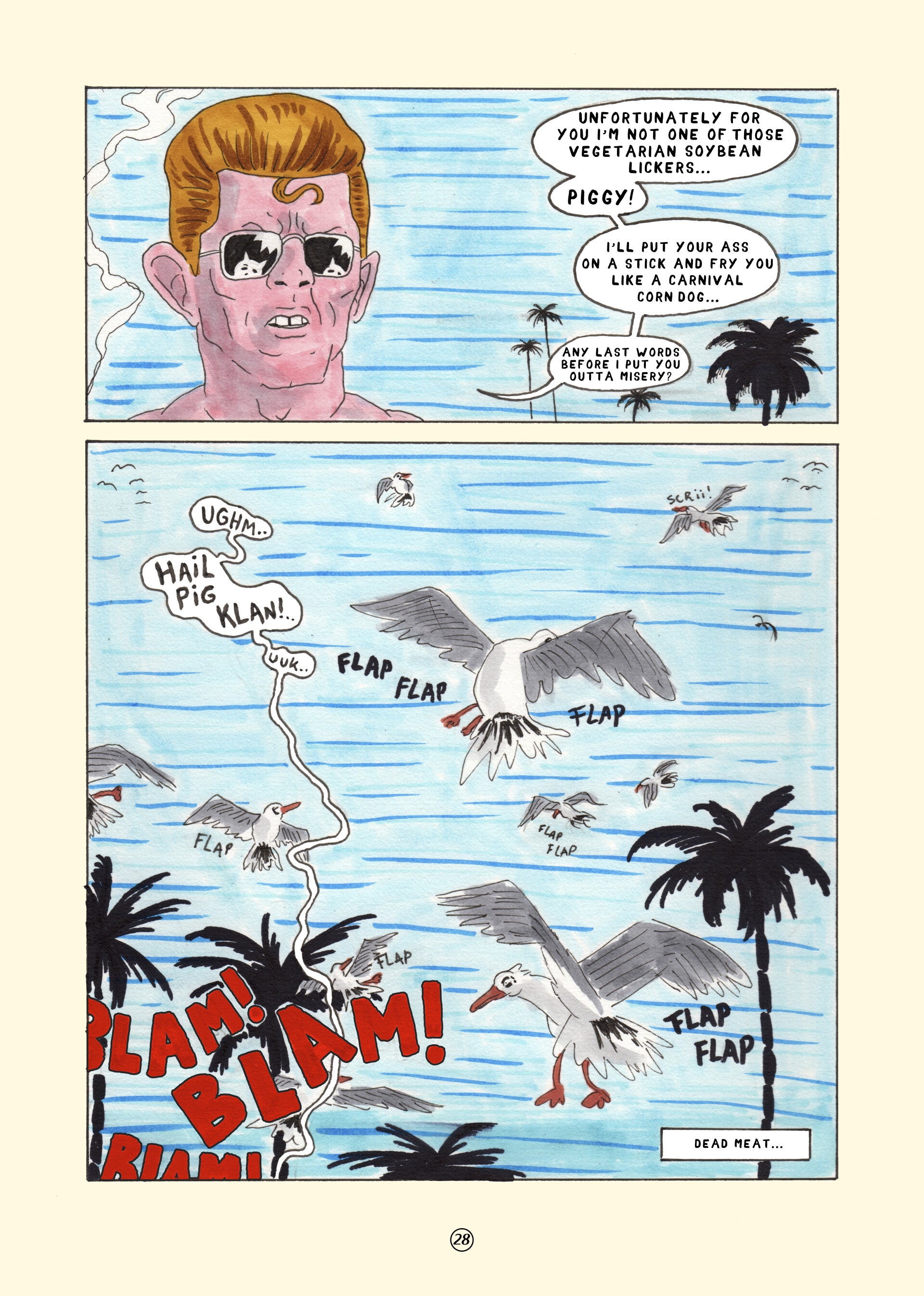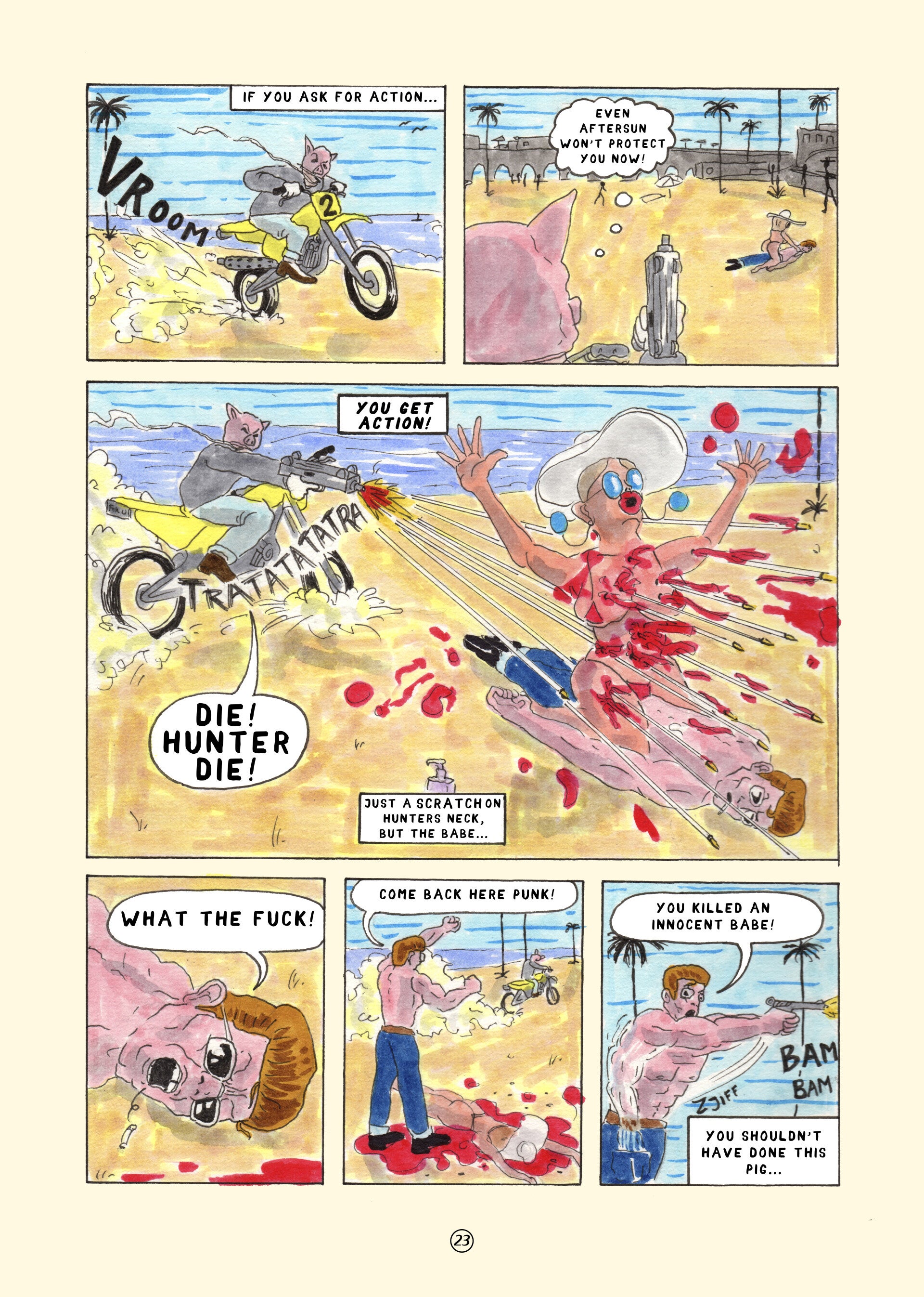 In een parallel universum dat veel weg heeft van een Hollywood Actiefilm is The Hunter geen voetballer maar een Amerikaanse ex-politieagent/superster in een zware midlifecrisis. “Liefde” is enkel een vage term geworden die hem meer doet denken aan borstimplantaten dan aan een tedere zoen. Maar op het moment dat er een criminele groep coke-dealers de straten van Los Angeles onveilig maken en hun vizier op The Hunter hebben gericht, kan hij niets anders meer doen dan in actie komen. Tijdens de strijd tegen deze criminele organisatie die zichzelf de “Pig Klan” noemt, vind hij bedrog, de liefde, maar vooral een hele hoop agressie...